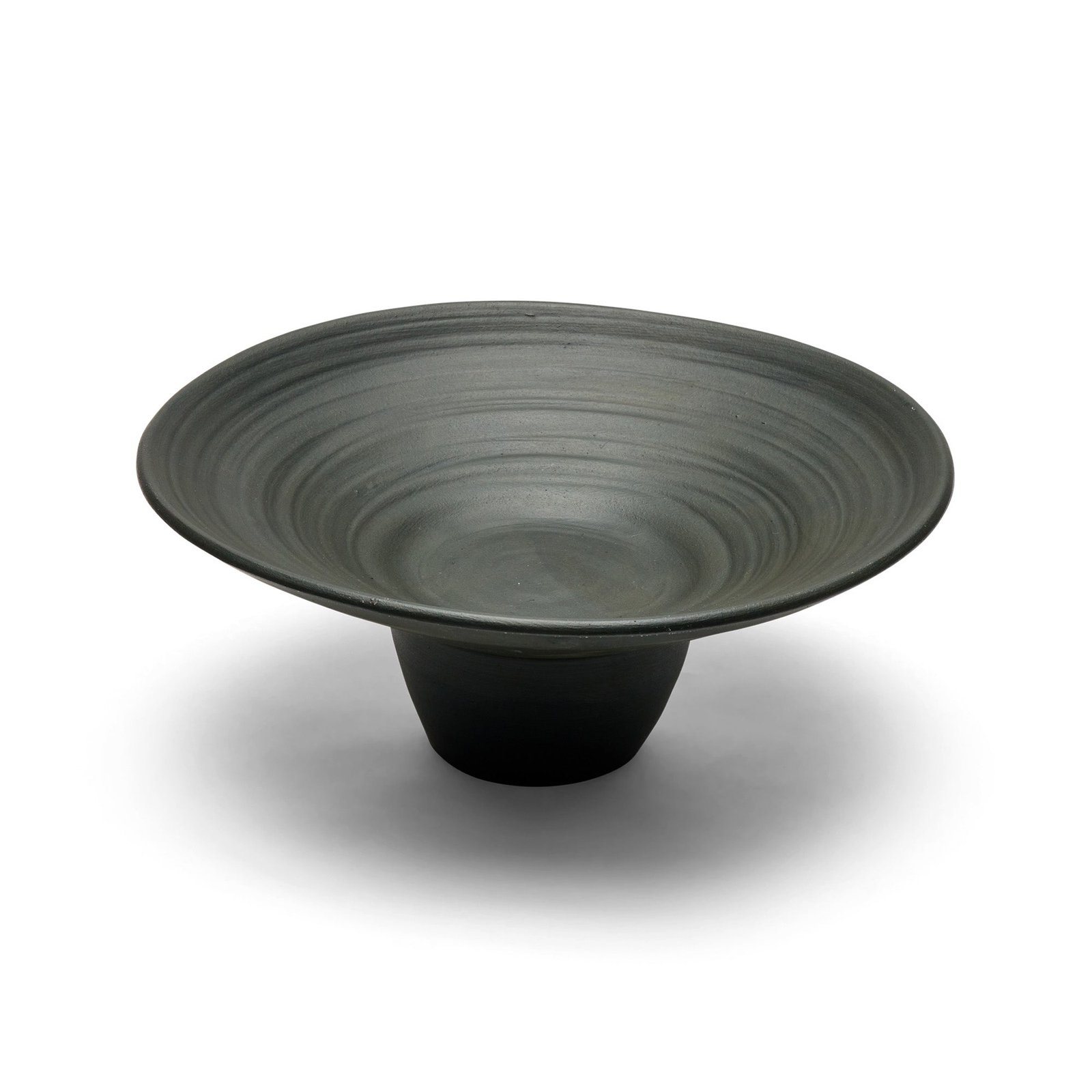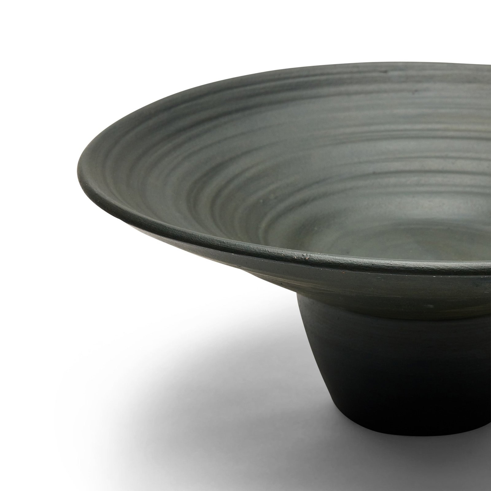 Elora Bowl Black Large. A handcrafted ceramic pedestal bowl in a matte glaze, designed as a high-impact tabletop feature. Sculptural and timeless, Elora functions beautifully as both a serving bowl and standalone decorative piece.