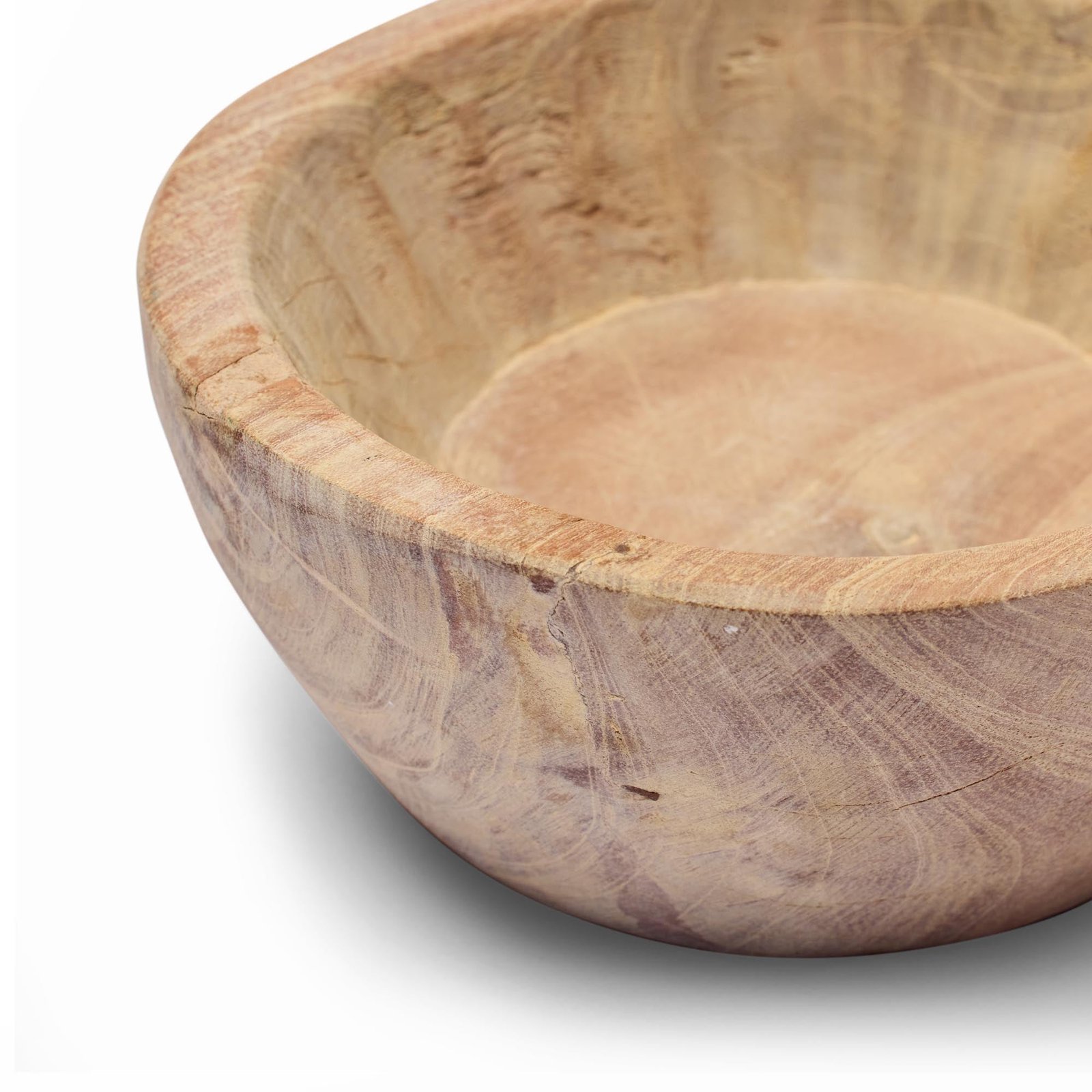 These stunning round antique dough bowls, once a staple in Indian kitchens, have been thoughtfully repurposed into timeless styling pieces. Handcrafted from solid teak with a raw, rustic appeal, each bowl is unique in character. Perfect for displaying trinkets, fresh fruit, or as a decorative kitchen accent, it also serves beautifully in a bathroom for soaps and rolled hand towels or on a bedside table for jewellery and keepsakes. Due to their handmade nature, each piece varies slightly in size and appearance. As such, the item received may differ slightly from the images shown.