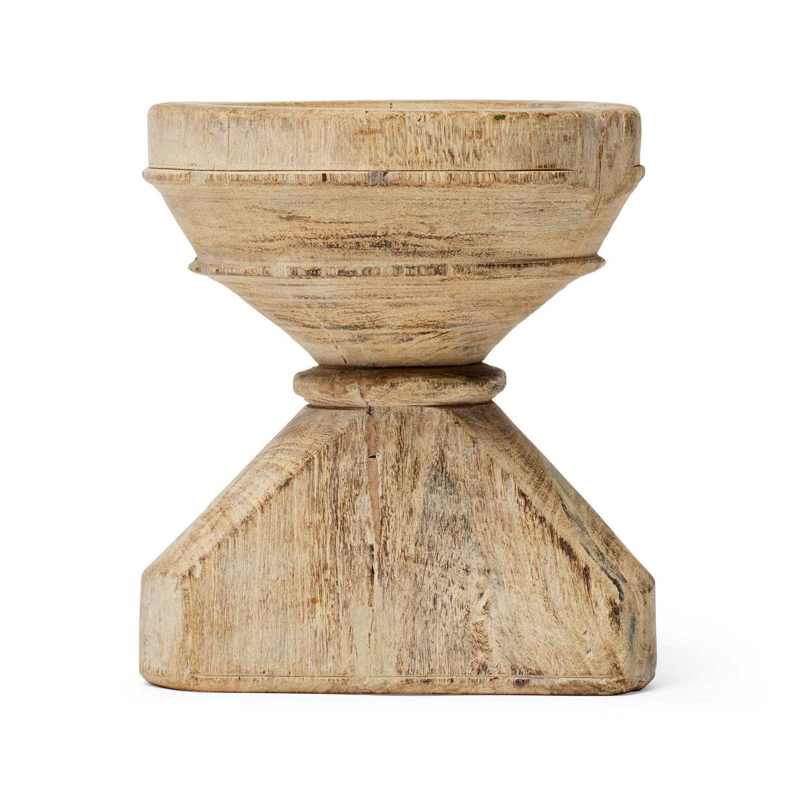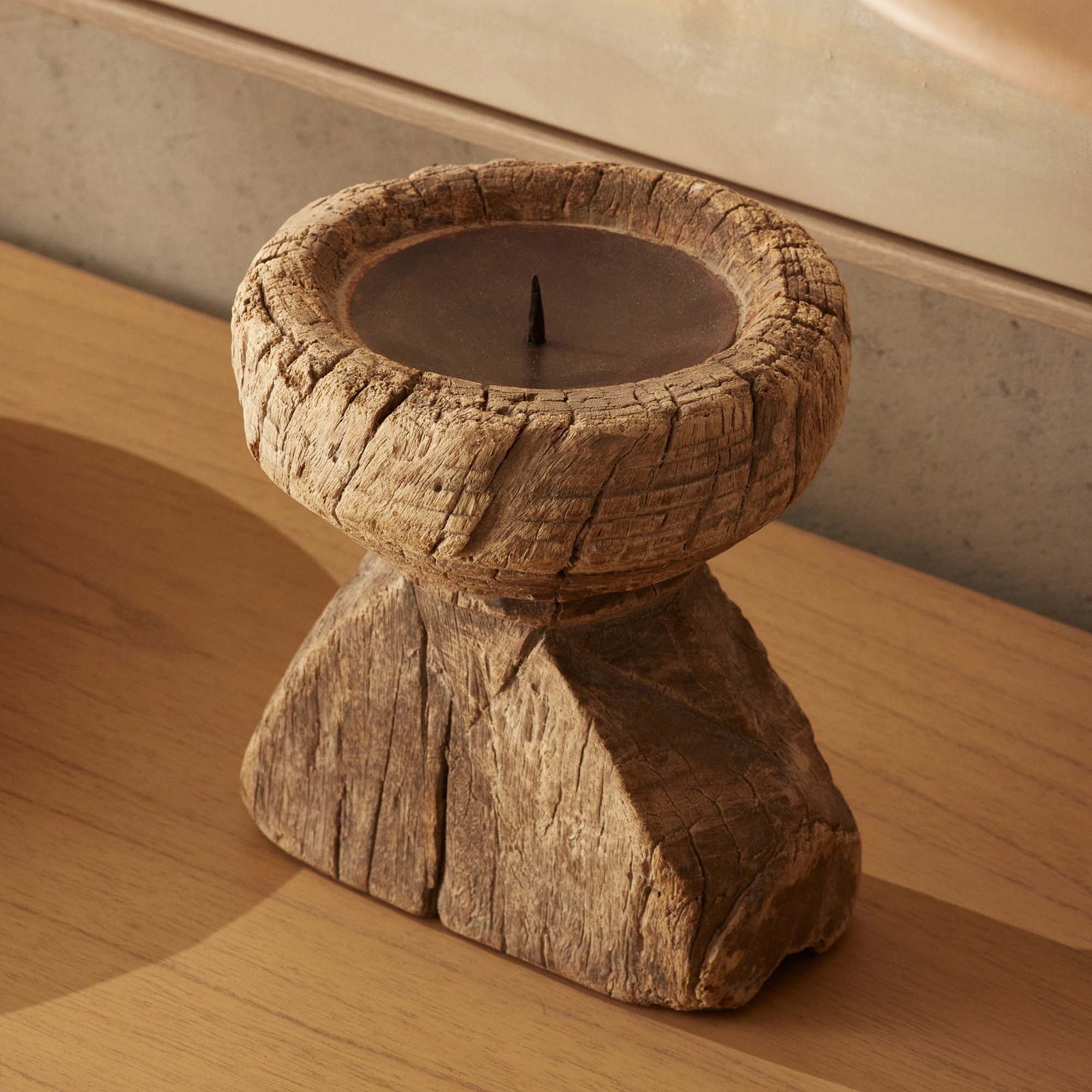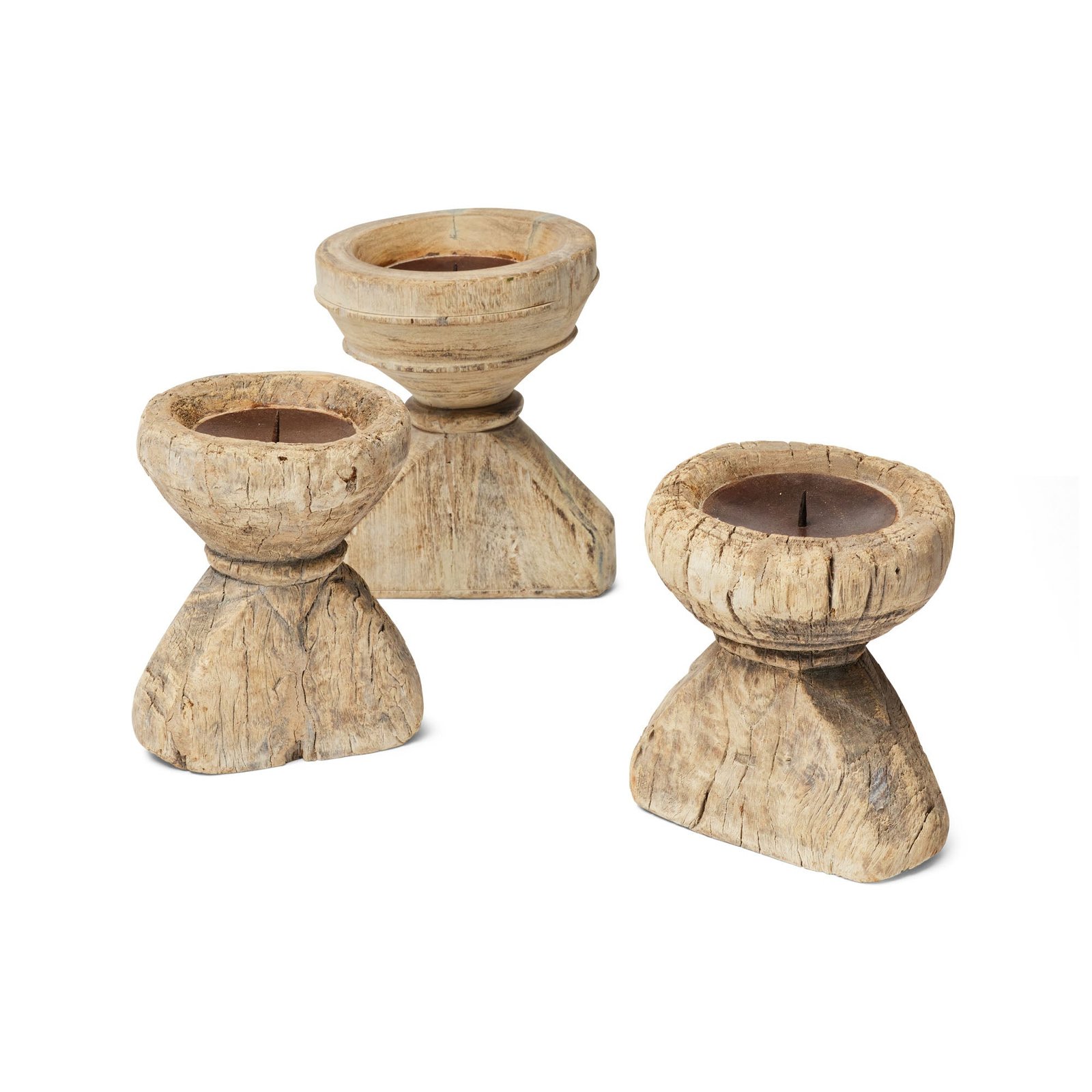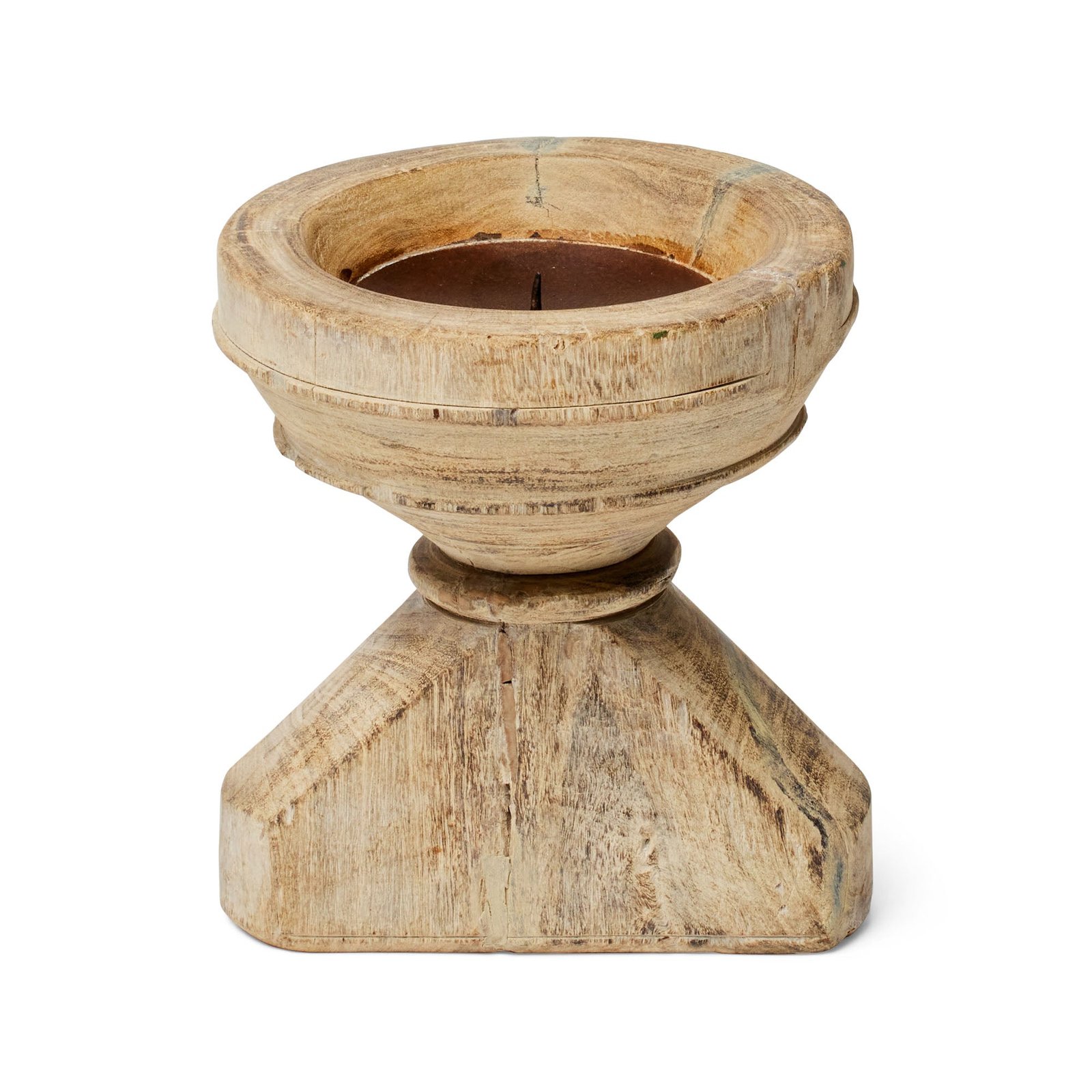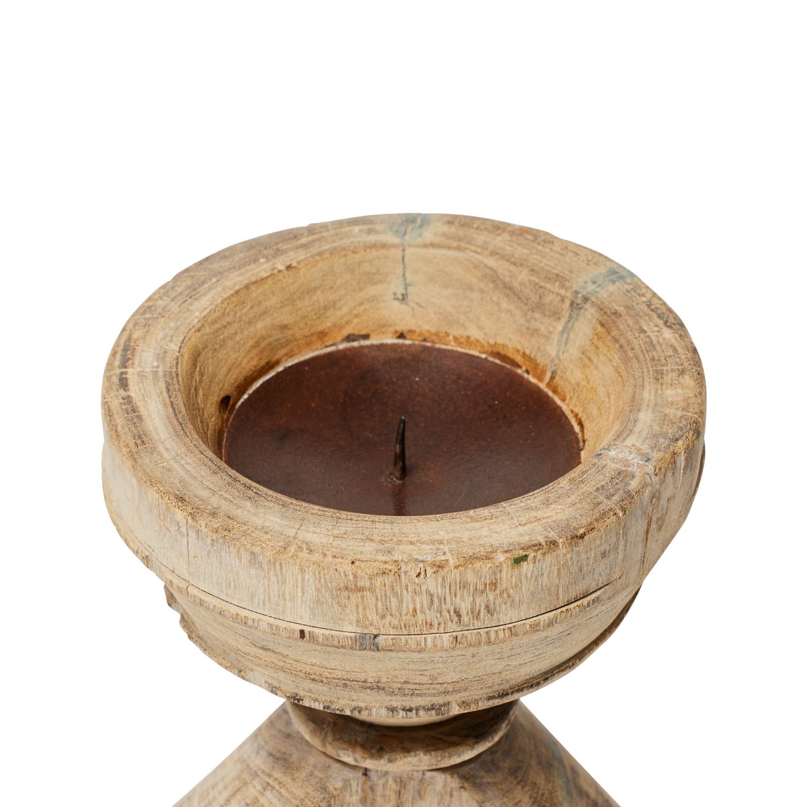 Sourced from India, our Kinara candle holders are handmade from repurposed wooden seeders. With a bleached finish & iron base with spike, each candleholder will support a taper or small pillar candle & as they are handmade will vary in size, colour & design. Feel the love for recycling and offer these beautiful materials a second life. Due to the use of reclaimed timber & hand-craftmanship, any natural flaws, imperfections & variances are part of the unique character of this beautiful item. All measurements are approximate & slight variations will occur in the size, colour & design.
