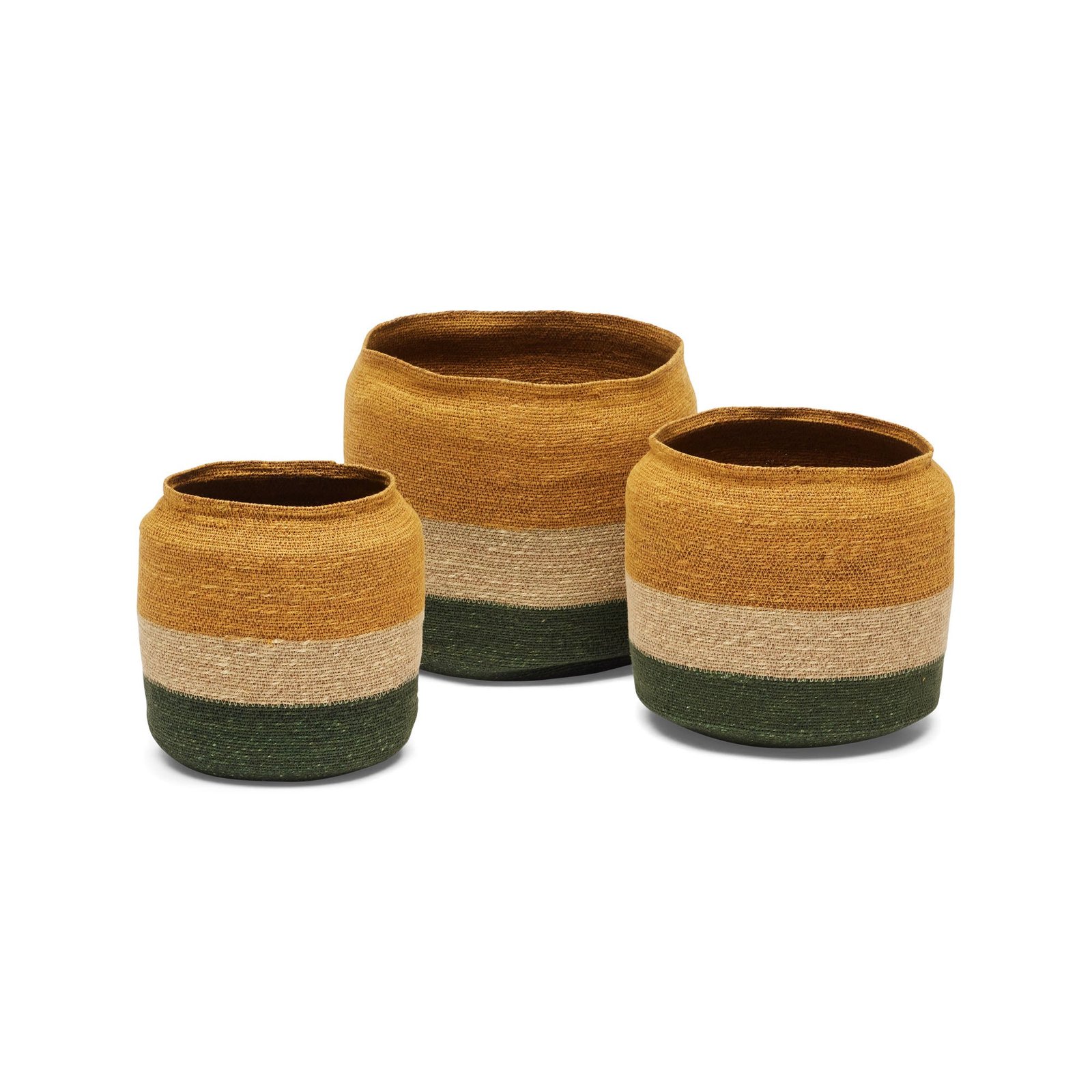The Mason Basket Set is a versatile storage solution. Made from 100% seagrass with an intricate weave pattern, these durable mustard, white & green baskets are not only functional but bring an artisanal aesthetic to any space. Grown in the shallow depths of salty coastal water, seagrass is a flowering marine plant; this eco-friendly raw woven material will inject a breezy warmth & comforting element to your decor. Suitable for indoor use only.