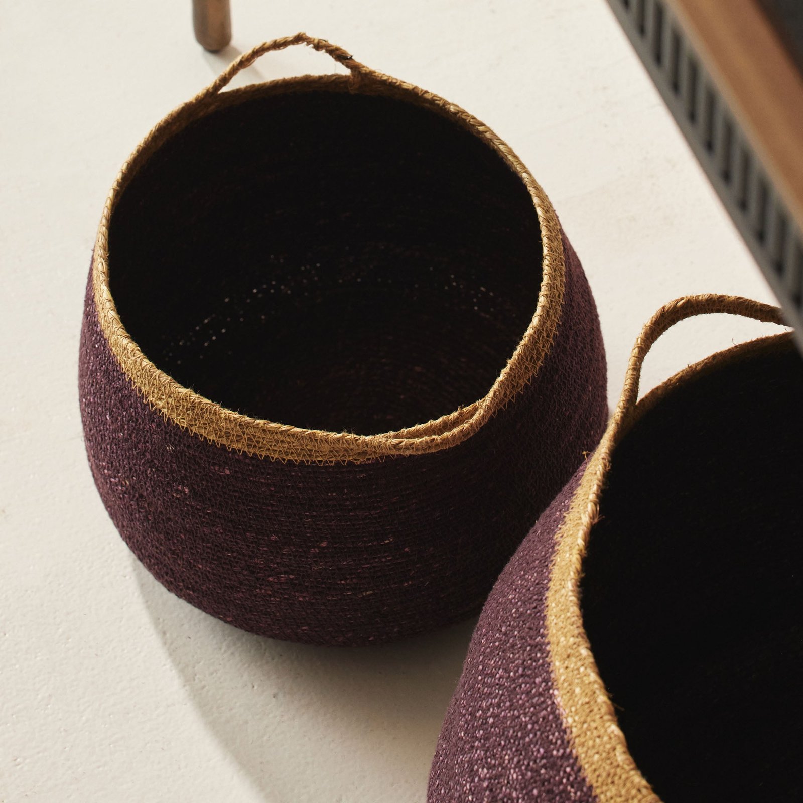 The Peto Basket Set is a versatile storage solution. Made from 100% seagrass with an intricate weave pattern, these durable mauve & mustard baskets are not only functional but bring an artisanal aesthetic to any space. Grown in the shallow depths of salty coastal water, seagrass is a flowering marine plant; this eco-friendly raw woven material will inject a breezy warmth & comforting element to your decor. Suitable for indoor use only.