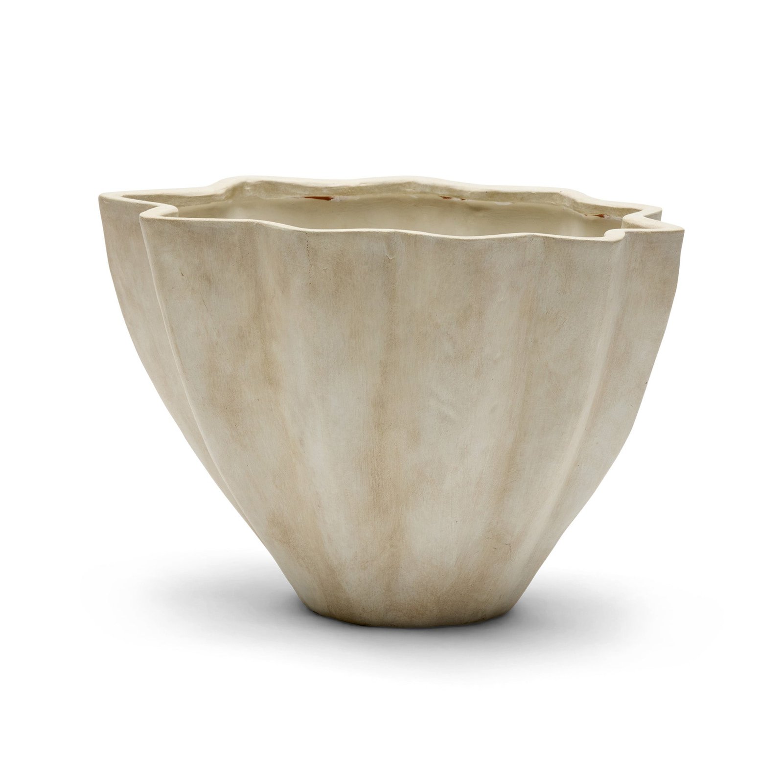 Introducing the Rion Vase White. A sculpturally elegant, handcrafted, and generously oversized masterpiece. Crafted from hand-glazed terracotta, this modern marvel features soft billowy waves, adding a touch of spectacular allure to any space. These unique artisan-crafted pieces stand out both alone and as part of a coordinated display. Embrace the beauty of imperfection with the Rion Vase. Each piece is one-of-a-kind & will have natural variations across colour, size & finish. Complete waterproofing is not guaranteed, see specifications for more information.
