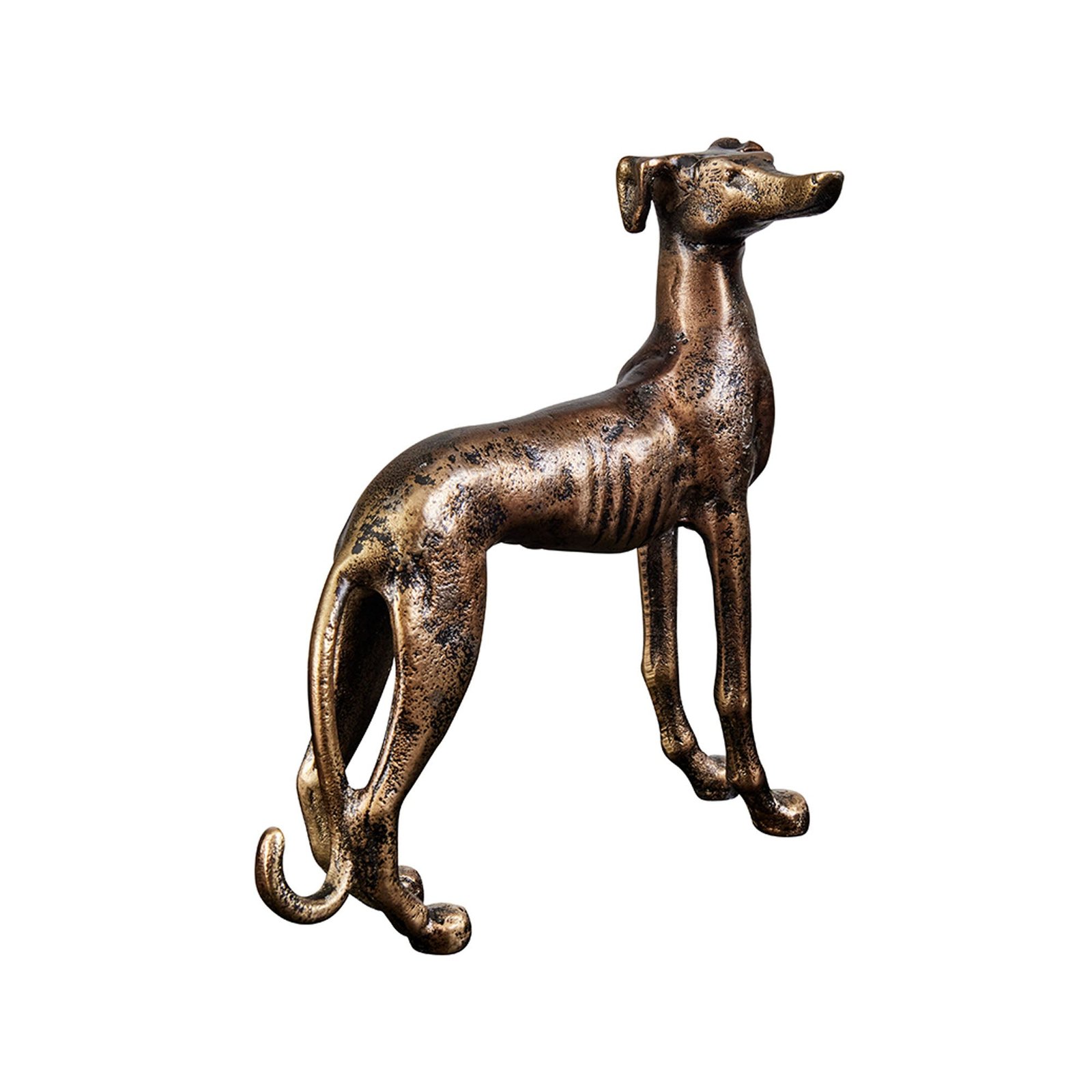 Introducing Rudi, the charming Greyhound Dog Sculpture in antique brass finish. This elegant piece adds character to any space without the fear of postman bites. Effortlessly stylish, Rudi is the perfect accent for your home decor, exuding grace and sophistication. A timeless addition that captures the essence of a loyal companion, making Rudi a must-have for dog lovers and art enthusiasts alike. Each piece is unique, with imperfections and variances celebrated as part of its character.