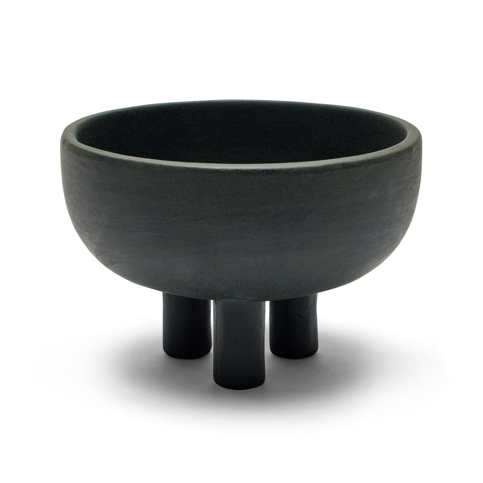 Tovi Bowl Black. A striking black ceramic bowl elevated on three rounded legs, balancing curved form with architectural structure. Sculptural and playful, Tovi introduces depth and contemporary character to any interior.